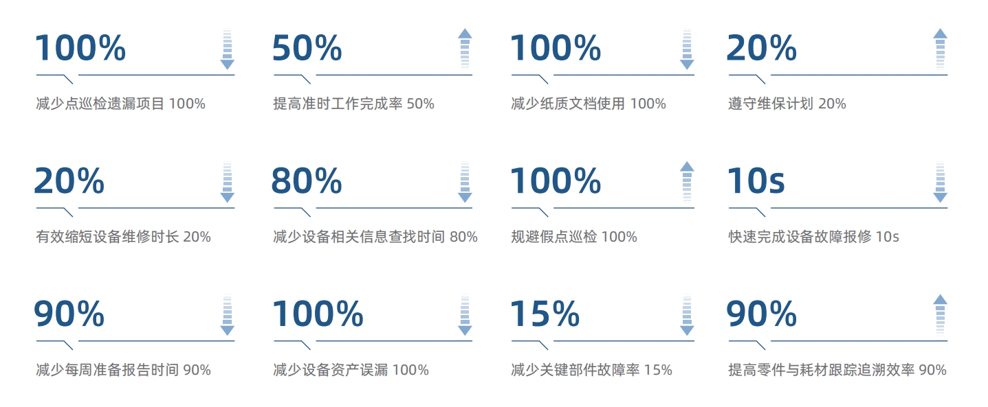 四川宜宾某新能源公司,从事光伏电池片生产,亟需对光伏电池片生产设备进行台账数据、点检、维修、保养、备品备件、能源管理、设备告警、 数据分析等全维度管控。为满足其管理需求,提供了设备智能运维管理解决方案,帮助客户实现设备数字化管理运维,有效提升运维效率,降低运维成本。